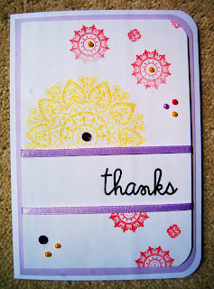 I stamped the pink flowers and cut them out then raised them with foam pads to give the card some dimension. If you look really closely you will see I have used my linen impression plate AGAIN. I must pull myself away from this but when you love something you just do.......at least it is not cream cakes, whiskey or cigars. Although I might be addicted to them and you will never know as we live in the 'virtual' world of blogging!!