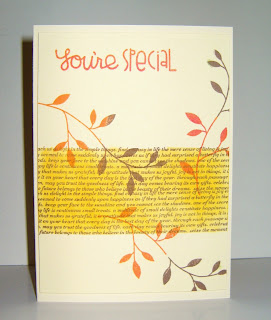 I printed off a skyline image from the web and very carefully cut it out. Then I cut the front of the base card down and attached my image. I thought a 'thinking of you' sentiment would go perfectly as I could send this to a friend abroad or, if I am away, to a friend at home.......I am sure they will get the double meaning???