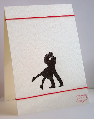 The original was posted in Dec 2011 and here it is, same colour scheme but definitely not CAS! Plus this time my dancers are not digi images but heat embossed to give texture. This was such a fun challenge, I may have to do another 'contrast' card!