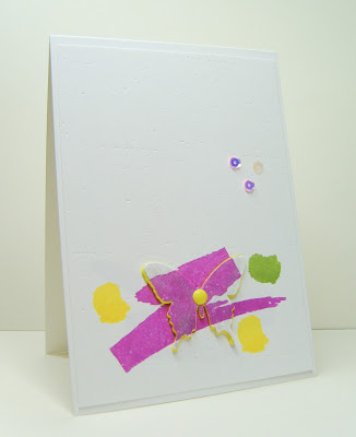 This week's photo at Fusion caught my eye immediately. The arty water splash look inspired me to use the Papertrey water splash stamps and the die cut butterfly butterfly.