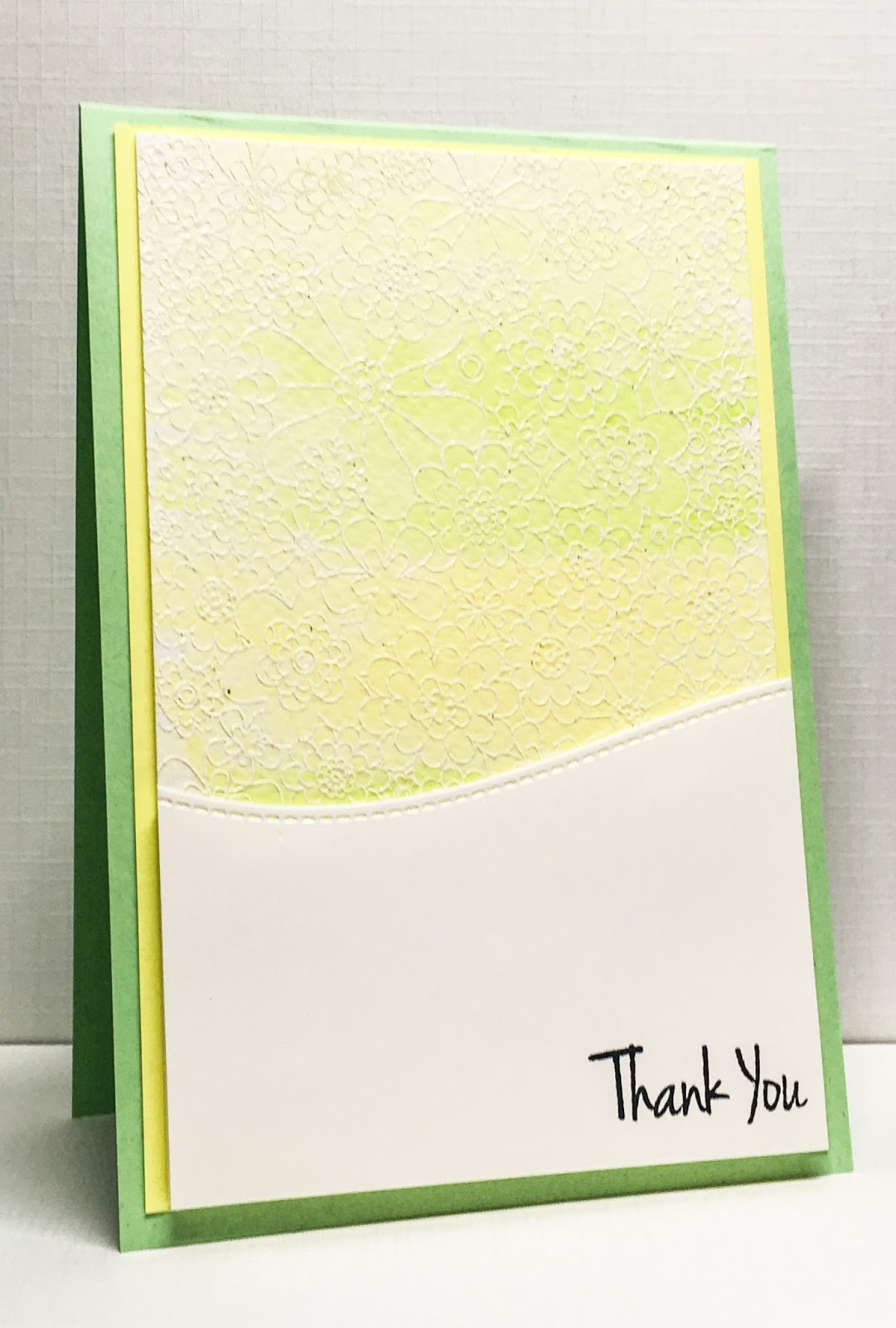 I just embossed the white card with a fabric folder-love the texture this gives. And white heat embossed the sentiment on black card and popped it up on foam pads. These wine glasses are cut from glitter card.